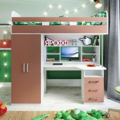 Кровать-чердак «Аракс» от фабрики ЯРОФФ – это прекрасный вариант меблировки детской комнаты, она выполнена в минималистичном стиле, в спокойных и приятных оттенках, которые обязательно понравятся владельцу комнату и создадут в ней комфорт и уют. Кровать-чердак «Аракс» от ЯРОФФ — это стильная, комфортная и функциональная мебель для детской комнаты, в ней предусмотрено удобное спальное место на втором ярусе, вместительный шкаф с распашными дверцами, а также обустроенная рабочая зона - место для учебы и досуга со столом, полками для мелочей и тумбой с выдвижными ящиками.