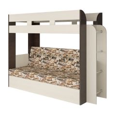 Кровать 2-х ярусная с диваном Карамель 75 (Музыка) Анкор светлый/Бодега темный
