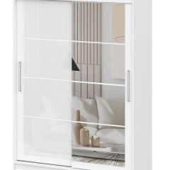 Цветовое решение Корпус/Фасад: ЛДСП белый текстурный / Стекло лакобель белый / Зеркало с фацетом.