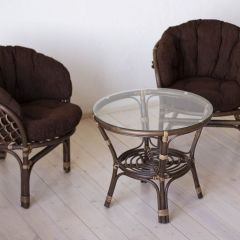 Комплект Багама дуэт, подушки коричневые полные твил (Орех матовый) стол круглый