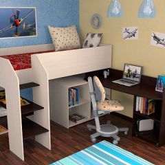Кровать-чердак "Теремок-М85" - это целый комплекс мебели, включающий в себя спальное место размером 200*80 см, шкаф для одежды, пенал с ящиками и полноценный рабочий стол. Прочная конструкция рассчитана на детей до 16 лет. Такой уголок экономит пространство в детской комнате, при этом обеспечивая все необходимые функции.