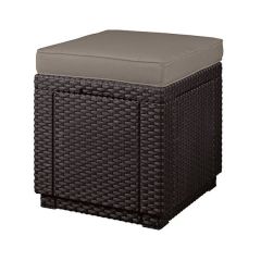 Cube with cushion - это оригинальное, простое по форме сиденье-тумба. Продукт может быть использован в качестве сиденья, столика или подставки для ног. Теплая, классическая гамма цветов и оригинальная, подобная ротанговой, фактура поверхности придется по вкусу даже самым требовательным пользователям. Изготовлена из стойкой к воздействию УФ-излучения и погодных условий пластмассы. Очень легко чистится.