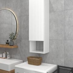 Белый шкаф с рифлёным фасадом будет отлично и стильно смотреться как в ванной, так и в туалете.