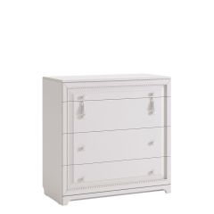 При создании детской использовались приемы итальянского декорирования мебели. Мотивы классической росписи в сочетании с любимым мотивом детского рисунка – бабочки и цветы – создают ощущение юности и нежности. Использование декоративных элементов – корон и карнизов в наборе мебели не перегружают интерьер детской комнаты и при этом создают ощущение интерьера маленькой принцессы. Изящные ручки под золото со вставками молочно-белого цвета идеально сочетаются с кремово-белым декором и золотистой палитрой рисунков вензелей.