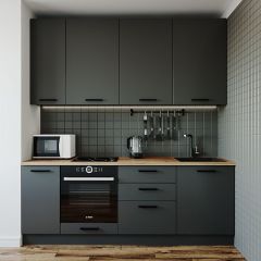 Фасады верхних модулей со свесом 12 мм дают возможность использовать без установки ручек.
