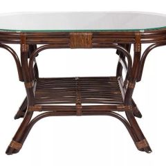 Комплект мебели Пеланги 02/15 включает в себя: 2 кресла и столик с красивым плетением снизу и полочкой, съемные подушки из материала улучшенного качества.